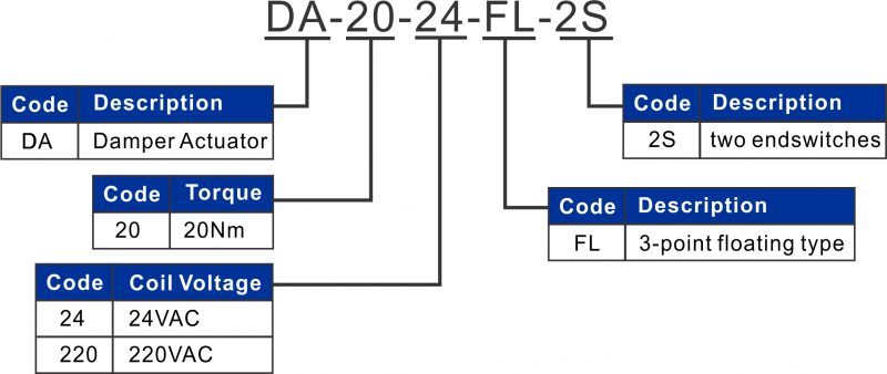 3-point floating type damper actuator, brushless DC motor,20Nm,specify 24VAC,two endswitches. | DA-20-24-FL-2S | $ 0.0 |